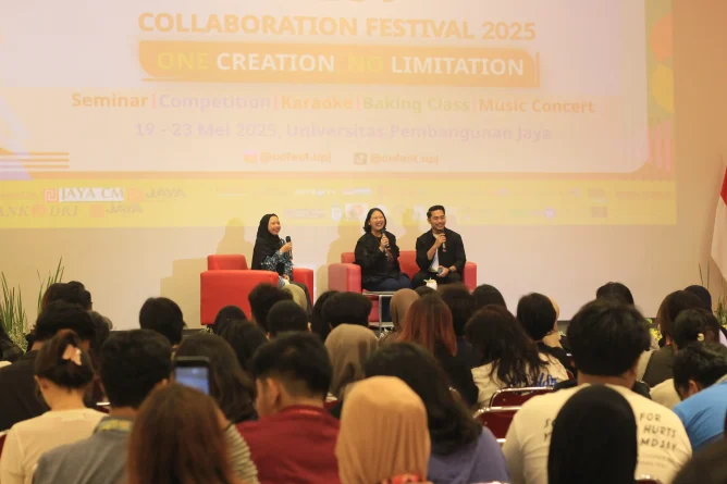 Bintaro, Tangerang Selatan, 13 Juni 2025 – Program Studi Ilmu Komunikasi Universitas Pembangunan Jaya (UPJ) telah sukses menyelenggarakan Collaboration Festival (CoFest) 2025, sebuah perayaan satu dekade yang berlangsung meriah pada 19 – 31 Mei 2025. Mengusung tema “Freedom of Expression” dan tagline “One Creation, No Limitation”.