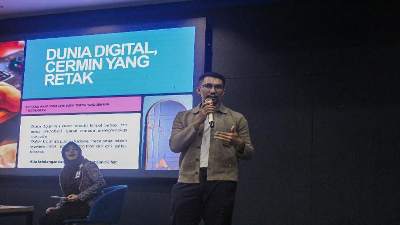 Dalam materinya berjudul “Dunia Digital: Cermin yang Retak,” Bang Geeek menggambarkan bahwa media sosial kini bukan lagi sekadar alat komunikasi, melainkan ruang di mana manusia menegosiasikan makna dirinya sendiri.